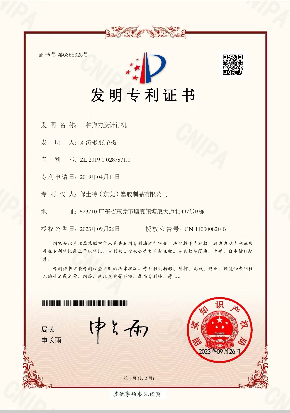 • 專(zhuān)利證書(shū)